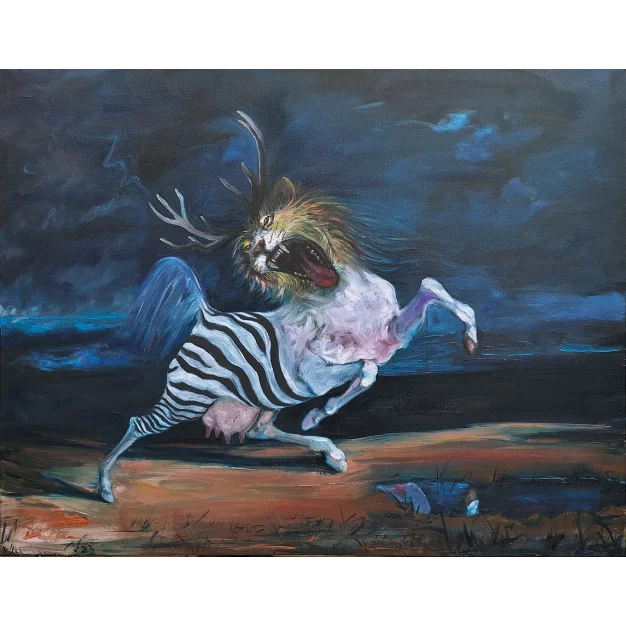 Eugene Delacroix's beautiful watercolour on a small paper, became updated to a metamorphosis in this big oil painting on canvas with title: