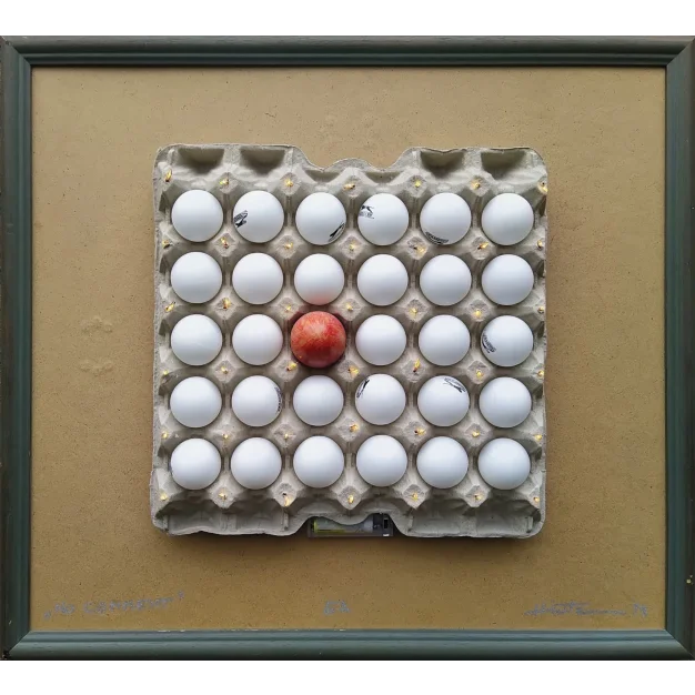 The Beginning and the End. The Birth and the Death. Christmas and Easter. Everybody eats eggs! Do we really eat what we see? Is it original or fake? Is it natural or chemical? Is it bio or it has a lot of E's? This work has only one original egg, a boiled, red painted egg, …the rest are just ping pong balls which represents the unnatural, unknown, fake food what we might not know what they are, but we are still buying them, cause they are in nice, cheep and eyes catching packaging.