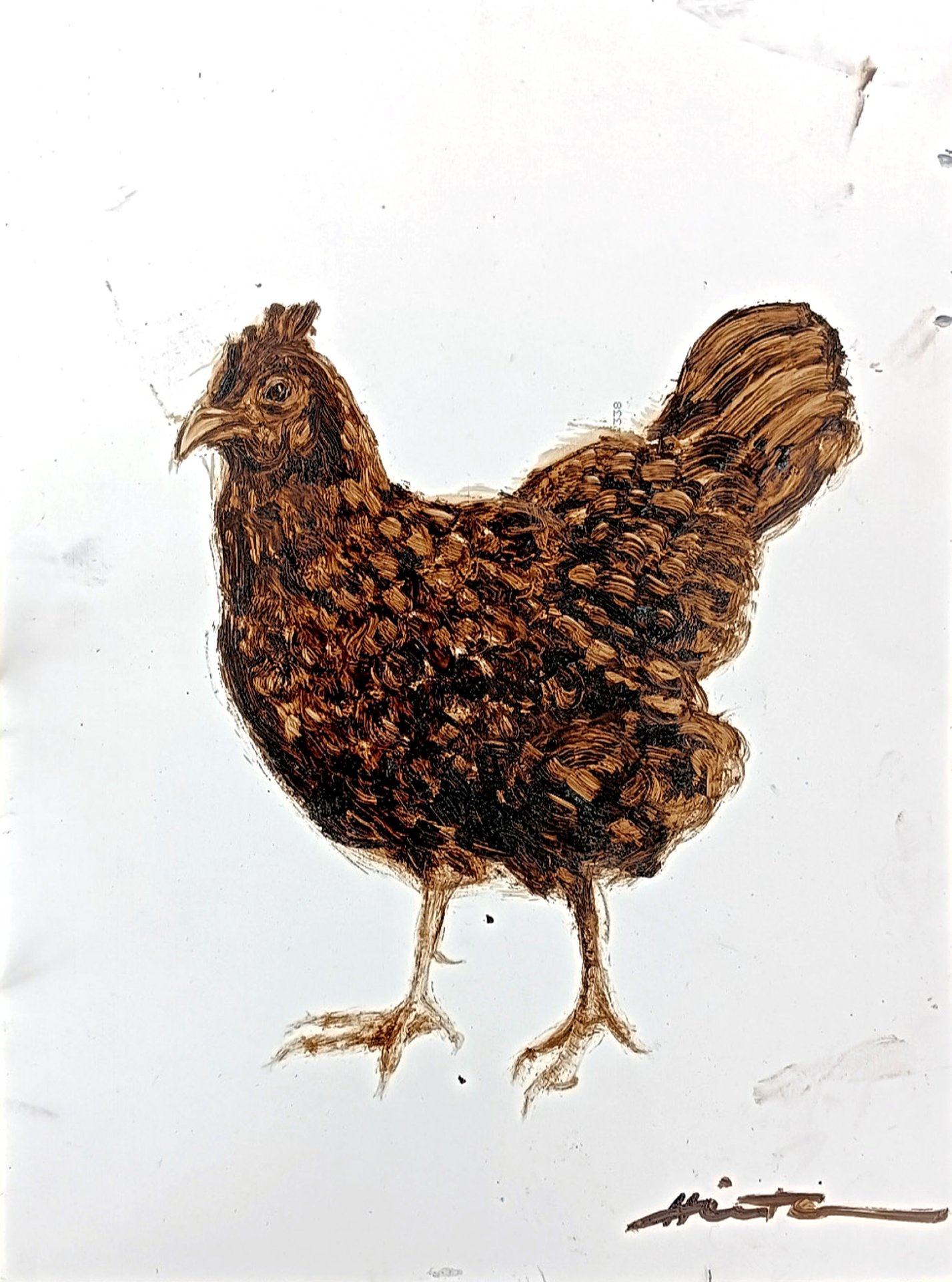 Het idee voor dit schilderij werd gegeven door een tv-zender, die om de ogen van de mensen op het scherm te houden, elke show elke 15 minuten stopt met ‘Breaking News’. Dit was erg vervelend omdat ze allemaal vol negativiteit zaten en geen van hen urgent of interessant was. Dus, zo boos als ik was, begon ik te schilderen, in een poging om alle woede die ik van binnen had te tonen… Het portret is op de een of andere manier verdeeld in 2 secties, waarbij de rechterkant met blauw onder invloed staat van het negatieve nieuws, met verdriet, pijn en onzekerheid. De linkerkant met glazen oog is krachtig boos en klaar om alles om zich heen te breken, vooral de tv, terwijl hij ook werd gevangen door deze negatief beïnvloede breaking news. Het woord BREAKING maakt deel uit van de titel ‘breaking news’ die op tv werd getoond. De andere woorden vergroten deze chaos zelfs psychisch door ze te lezen. Dit portret, vol overweldigende negatieve gevoelens, kreeg uiteindelijk een zenuwinstorting.